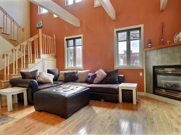 Grand condo sur 2 étages avec mezzanine d’environ 1350 pc. Belles grandes fenestrations, foyer au gaz naturel au salon avec plafond cathédrale, air climatisé mural sur les deux étages (3 sorties murales). Grand balcon arrière surplombant une belle grande cour privée appartenant aux copropriétaires. Deux salles de bains. Plancher en lattes de bois franc. À 5 minutes du Marché Atwater!